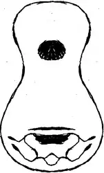 ![]() A plan of the body shape of a Viola Toeira, with typical soundboard decoration and bridge design. | |