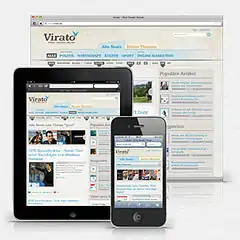 Virato's back end system screens the social distribution of an article's link via a social media API repeatedly throughout the day. A corresponding algorithm then measures and sorts the article based on its social score. Virato.de has been implemented using responsive web design and is available across all devices.[4]
