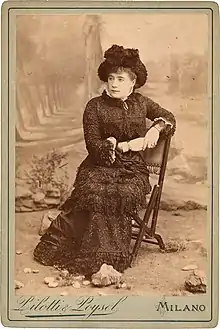 Virginia Ferni debuted on the opera stage in 1876, in Charles Gounod's Faust, at Madrid's Teatro Reale.[3] She was the first to play Bizet's Carmen in Italian, at Milan's La Scala in 1885.[4] She created the title role of Alfredo Catalani's Edmea when it premiered in 1896, and of Catalani's Loreley, when it was first performed in 1890.[5] Arturo Toscanini made his professional conducting debut in Italy at an 1886 performance of Edmea starring Virginia Ferni Germano.[6] Her 1886 appearance as Mignon in Milan prompted a London newspaper correspondent to comment that "her appearance is, to say the least, hardly suited for portraying a very youthful gipsy girl," but to concede that "her matured artistic abilities and fine voice sustain the part in a manner highly acceptable to her auditors."[7]