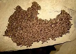| Photo of a Virginia big-eared bat roosting at a large hibernaculum | |