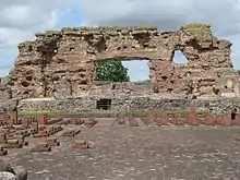 Viroconium or Uriconium, formally Viroconium Cornoviorum, was a Roman town, one corner of which is now occupied by Wroxeter, a small village in Shropshire, England, about 5 miles (8.0 km) east-south-east of Shrewsbury. At its peak, Viroconium is estimated to have been the 4th-largest Roman settlement in Britain, a civitas with a population of more than 15,000.[1] The settlement probably lasted until the end of the 7th century or the beginning of the 8th.[2] Extensive remains can still be seen.