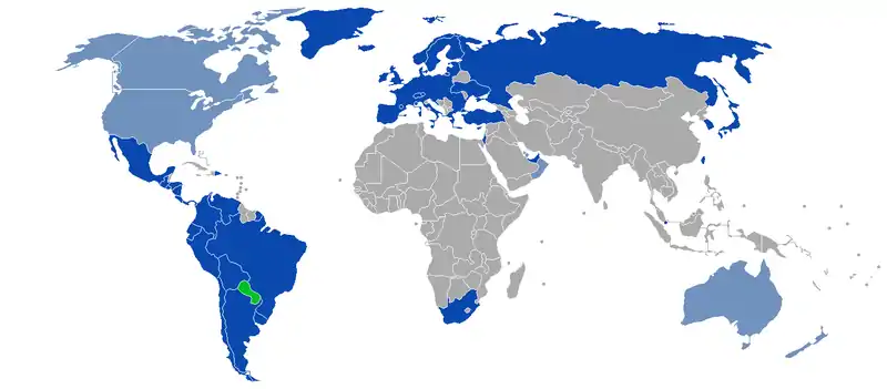 A foreign national wishing to enter Paraguay must obtain a visa unless they are citizens of one of the eligible visa exempt countries or countries whose citizens are granted visa on arrival.[1] Paraguay visas are documents issued by the Ministry of Foreign Affairs and its subsequent diplomatic missions abroad; with the stated goal of regulating and facilitating migratory flows.