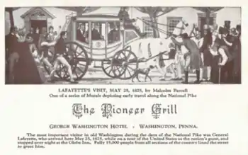 - May 25 – Visited Washington, Pennsylvania,[9] dining at The George Washington Hotel and staying at the Globe Inn[56]