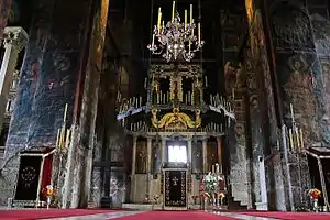 Bulgarian writer Gregory Tsamblak, author of the Life of Stefan Dečanski, was the hegumen (monastery head) at the beginning of the 15th century. The painter-monk Longin spent two decades in the monastery during the second half of the 16th century and created 15 icons with depictions of the Great Feasts and hermits, as well as his most celebrated work, the icon of Stefan Dečanski. In the late 17th century, the Ottomans plundered the monastery, but inflicted no serious damage.[5] In 1819, archimandrite Zaharija Dečanac became Metropolitan of Raška and Prizren.