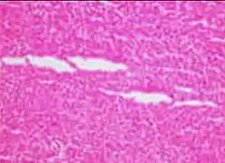 A crush artifact is an artificial elongation and distortion seen in histopathology and cytopathology studies, presumably because of iatrogenic compression of tissues. Distortion can be caused by the slightest compression of tissue and can provide difficulties in diagnosis.[2][3] It may cause chromatin to be squeezed out of nuclei.[4] Inflammatory and tumor cells are most susceptible to crush artifacts.[4]