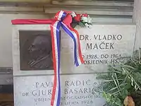 Maček helped found the International Peasants' Union along with Georgi Mihov Dimitrov in 1947. He refused offers for the leadership of the numerous Croatian émigré groups. In 1949, he provided much of the material on Yugoslavia for "Communists Crush Churches in Eastern Europe," edited by Reuben H. Markham.[20]He died of a heart attack in Washington D.C. on 15 May 1964, at 84. His remains were taken to Croatia in 1996 and buried in the Mirogoj cemetery in Zagreb. He was posthumously awarded the Grand Order of King Dmitar Zvonimir in 2004.[21]