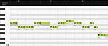The Score Editor is a piano roll style editor to input notes, lyrics, and some expressions. When entering lyrics, the editor automatically converts them into Vocaloid phonetic symbols using the built-in pronunciation dictionary.[3] The user can directly edit the phonetic symbols of unregistered words.[13] The Score Editor offers various parameters to add expressions to singing voices. The user is supposed to optimize these parameters that best fit the synthesized tune when creating voices.[12] This editor supports ReWire and can be synchronized with DAW. Real-time "playback" of songs with predefined lyrics using a MIDI keyboard is also supported.[3]