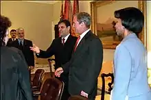 He was one of the founders and the first president of the Democratic Party of Serbia since its creation in 1992 until 19 March 2014, when he resigned as party president and retired from active politics after his party failed to reach 5% threshold to enter the Parliament on March 16 elections for the first time in its history.[2] In October 2014, he left the party after disagreements with new party leadership over what he saw as their abandonment of the policy of political neutrality.[3] In November 2014, he was one of the founders of the right-wing eurosceptic "Statehood Movement of Serbia".[4][5]