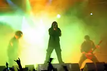 Before the release of Vol. 3, band members had promised a more experimental album; drummer Jordison said that "it's almost as if Slayer was tapping on Radiohead".[14] For the first time in Slipknot's career, songs such as "Circle" and "Vermilion Pt. 2" were led by an acoustic rather than an electric guitar. According to Todd Burns of Stylus, songs such as "Pulse of the Maggots" and "Before I Forget" incorporate a "pounding metal" style.[20] AllMusic wrote that tracks, such as "The Blister Exists", "Three Nil", and "Opium of the People", combine the two extremes of their recognizable metal edge with melody, and the most apparent shifts being in Taylor's vocal style, with relatively few songs relying solely on screamed vocals in comparison to their earlier work.[4] Entertainment Weekly wrote that the album "[bounced] between over-powering speed-metal and haunting acoustic rock".[21]