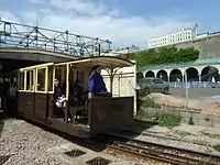 Halfway station is located in the middle of the railway, and has previously been known as Paston Place, Children's Playground, and Peter Pan's Playground. The original station opened in 1884 when the line was extended, and was both the eastern terminus and the depot. Volk also built his own offices at this location, inland from the station. The original station was located on the same site as the depot, and remained there until the station remodelling just after the second world war, when the new station platforms and passenger shelters were constructed about 50 yards further west than the original site.[9] The station has two platform faces, on a single central island platform, in the centre of a passing loop. There is a public viewing gallery in the neighbouring railway depot and workshop.