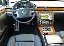 The interior benefited from some new technologies, but retained the 2009 MY layout. The Phaeton was offered as a normal wheelbase and long wheelbase models, with five seat layout or an optional four seat interior. In the five seat version, the front seats can be adjusted 12 ways. Standard features include all wheel drive, air suspension, and four zone automatic climate control. A multifunction steering wheel can be ordered in leather or wood leather.