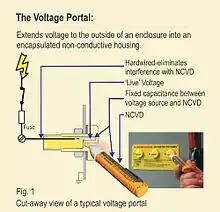 Many maintenance workers carry NCVD pens or AC voltage detectors in their tool belts. This portable device allows workers to quickly check electrical conductors for live voltage without actually touching the bare wire. The NCVD can sense voltage when positioned close to the live conductor without making a hard-wired electrical connection. A voltage portal is used to assist workers in creating an electrically safe work condition as part of a lockout-tagout procedure before beginning work on electrical or mechanical equipment.