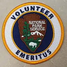 The idea for a Volunteer Emeritus Program was suggested in a draft Director’s Order 7 in 2014.[8] Launched in collaboration with the Coalition of National Park Service Retirees, the Emeritus Volunteer Program seems to have been an effort to engage NPS retirees in volunteerism (http://protectnps.org/nps-emeritus-volunteer-opportunities/). Although a patch was created and available, no policies were ever issued regarding the wear of this patch.
