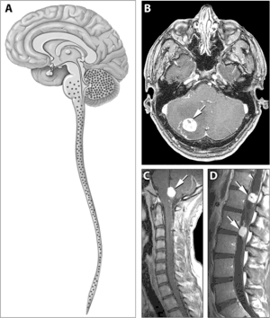 | Typical distribution of hemangioblastomas in Von Hippel–Lindau disease | |