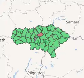 Voskresensky District (Russian: Воскресенский райо́н) is an administrative[1] and municipal[6] district (raion), one of the thirty-eight in Saratov Oblast, Russia. It is located in the center of the oblast. The area of the district is 1,400 square kilometers (540 sq mi).[3] Its administrative center is the rural locality (a selo) of Voskresenskoye.[2] Population: 12,098 (2010 Census);[4] 12,008 (2002 Census);[9] 12,080 (1989 Census).[10] The population of Voskresenskoye accounts for 27.4% of the district's total population.[4]