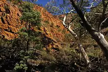 The national park is situated south of the dingo fence, meaning it is situated in that area, where dingoes prosecuted and usually rare or absent.[4] Wild dogs and foxes are poisoned regularly in the national park. Among the animals, which are protected in the national park, is the yellow-footed rock wallaby.[5]