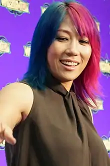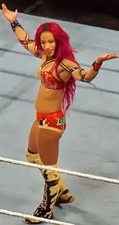 The championship was the first women's title to be defended in a WWE pay-per-view main event, which was at Hell in a Cell in October 2016; this was also the first-ever women's Hell in a Cell match and the first women's match to main event a WWE pay-per-view. At the event, Charlotte (whose ring name was lengthened to Charlotte Flair) defeated Sasha Banks to become a three-time champion.[8] After two years, it was again featured in the main event match of a pay-per-view, which was the first-ever all-women's pay-per-view Evolution in October 2018, where Ronda Rousey retained the title against Nikki Bella.[9] Rousey then defended the title in a winner takes all triple threat match against SmackDown Women's Champion Charlotte Flair and Becky Lynch in the main event of WrestleMania 35 in April 2019, which Lynch won. This was the first women's match to main event a WrestleMania – WWE's flagship event.[10] On May 10, 2020, the championship became the first in history to be directly rewarded as a result of winning the Money in the Bank ladder match (taped April 15, 2020), which was revealed when the case was opened by Becky Lynch the following night on Raw. Lynch announced that she was forfeiting the title due to pregnancy and announced the Money in the Bank match winner, Asuka, as the new champion.[11]