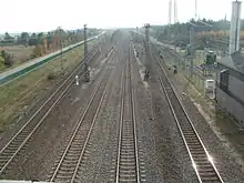 The Waghäusel Saalbach–Graben-Neudorf railway is a 7.94 km long[3] railway north of Karlsruhe. It connects the Mannheim–Stuttgart high-speed railway with the Rhine Railway and is used by scheduled trains between Mannheim and Karlsruhe.