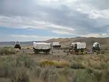 A wagon fort, wagon fortress, or corral,[1] often referred to as circling the wagons, is a temporary fortification made of wagons arranged into a rectangle, circle, or other shape and possibly joined with each other to produce an improvised military camp. It is also known as a laager (from Afrikaans), especially in historical African contexts.[2][3]