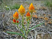 Waitzia acuminata, commonly known as orange immortelle, is an annual herb in the family Asteraceae. It is native to Australia. Plants grow to between 0.1 and 0.6 metres in height and have leaves that are long and narrow. These are between 2 and 10 cm long and 2 to 5 mm in width.[2][3] The yellow, orange or white flowers appear between July and January.[2]