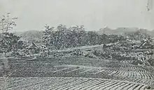 Hatakeyama Shigeyasu was Hatakeyama Shigetada's eldest son. He had had a quarrel with Hiraga Tomomasa, who was Hōjō Tokimasa's son-in-law. Tomomasa hadn't forgotten the fact and so spoke to Tokimasa against both the Hatakeyama. Tokimasa himself hadn't forgotten how Shigetada had, following Minamoto no Yoritomo's will, tried to protect the shōgun's son and heir Yoriie, and was looking for an excuse to kill them. Having received from shōgun Sanetomo the order to arrest the Hatakeyama, he surrounded Shigeyasu's residence with his soldiers. Shigeyasu fought well, but in the end was killed. The day was June 22, 1205,[26] and this is where the residence stood. The day after, Shigetada himself was tricked into going to Musashinokuni's (a region in the north eastern part of Kanagawa) Futamatagawa, where he was killed.
