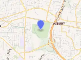The grounds also host multiple high school cross-country races. Including dual meets, high school conference championships, Mid-East Region Championship, and the Nike Team Southeast National Regional meets. The course starts and ends behind the practice fields and runs along the perimeter of the grounds. It is known to give personal bests even with a difficult hill which must be run twice. The course record for the 5k distance is 14:32.2 by Brodey Hasty at the 2016 Great American Cross Country Festival. In recent years it has held the Atlantic Coast Conference's conference championship.