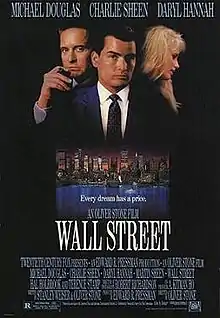 Wall Street is a 1987 American drama film, directed and co-written by Oliver Stone, which stars Michael Douglas, Charlie Sheen, Daryl Hannah and Martin Sheen. The film tells the story of Bud Fox (C. Sheen), a young stockbroker who becomes involved with Gordon Gekko (Douglas), a wealthy, unscrupulous corporate raider.