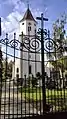 Wallerstein, monument (die Pestsäule) and Catholic Parish Church of Saint Alban