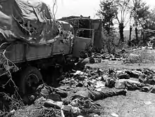 On April 15, after the Allies had split the pocket into two, Major-General Matthew Ridgway commanding the U.S. XVIII Airborne Corps called upon Model to surrender rather than throw the lives of the soldiers under his command away in an impossible tactical situation for Army Group B. Model's reply was that he still considered himself bound by his oath to Adolf Hitler and his sense of honour as a German field marshal, and in consequence a formal surrender was out of the question and he ordered Army Group B's dissolution. The oldest and youngest soldiers were discharged from military service and the remaining men were granted leave by order, to surrender or attempt to break out at their discretion.[91] The Fifth Panzer Army had already laid down its arms before this order was given and Model's command communications in the pocket were disintegrating. On 20 April, Joseph Goebbels' Propaganda Ministry in Berlin publicly denounced Army Group B as traitors to the Reich, marking the final act between Model and the Nazi regime he had served.[92][93]