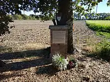 Following Nowonty's death, a stone memorial was built at the crash site in Epe which included remnants of his Me 262. The commemorating plaque on the memorial read: "Here on 8 November 1944, following 258 aerial victories, the recipient of the Knight's Cross with Oak Leaves, Swords and Diamonds, Major Walter Nowotny, fell for the people and the fatherland." In August 2017, following a lengthy debate in Bramsche, the plaque was replaced with a new text, addressing the issue of commemorating alleged war heroes, and commemorating the victims of war and resistance.[39][40]