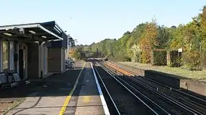 The station is just north of the approximate midpoint of the medieval parish boundaries of Walton.[6] Today it is on the southern boundary of Walton and the northern boundary of Hersham,[7] and more particularly between two large-plot, neighbourhoods of detached homes, Burwood Park and Ashley Park. These are predominantly low rise and have avenues and greens; they are not a conservation area with no buildings which pre-date 1750 but the former has one or two listed buildings for architecture.[8] The commercial centre of Walton is 0.6 miles (0.97 km) north.