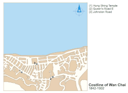 Wan Chai was the first home to the many Chinese villagers living along the undisturbed coastlines in proximity to Hung Shing Temple. Most of them were fishermen, who worked around the area near Hung Shing Temple overlooking the entire harbour. Hung Shing Ye, the God of the Sea, was one of the deities worshiped by the locals.[2]