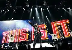 Since March 2009, Jackson was preparing to perform "Wanna Be Startin' Somethin'" during his This Is It concert series from 2009 to 2010.[28] During rehearsals for the This Is It concerts, Jackson's performance of "Wanna Be Startin' Somethin'" contained an a cappella snippet of "Speechless", from Jackson's studio album Invincible (2001). Following Jackson's death in June of the same year, video footage of Jackson rehearsing the song was used as the opening song in the 2009 concert documentary, Michael Jackson's This Is It.[29]