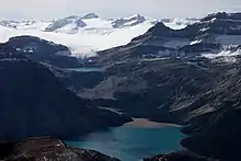 The Crowfoot Glacier which was once connected to this icefield is no longer part of the Wapta Icefields.