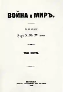 ![]() Front page of War and Peace, first edition, 1869 (Russian) | |