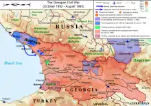 Georgia claimed that Russian army and intelligence contributed decisively to the Georgian defeat in the Abkhazian war and considered this conflict (along with the Georgian Civil War and Georgian–Ossetian War) as one of Russia's attempt of restoring its influence in the post-Soviet area.[66]