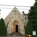 Historic structures in the town include the Cline Blacksmith Shop/Town Jail, a stone structure on Main Street erected around 1830. Two generations of the Cline family operated a blacksmith shop in the structure until 1895. In the earl twentieth century, the structure was converted for use as a town jail.[10] St. Peter's Lutheran Church was founded in 1840 by Rev. John Hamilton and erected its first church on the site in 1870. After this building collapsed in 1934, the present stone church, designed by A. Hensel Fink in Gothic Revival style.[11] The Old Presbyterian Church was constructed in the latter half of the nineteenth century and is a rare example of Italianate style in Wardensville. The Odd Fellows Hall was erected in 1856 on the southern edge of town near the intersection of Main Street and Trout Run Road.