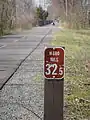 The W&OD Trail's trailhead (Mile 0) is at the intersection of South Shirlington Road and South Four Mile Run Drive.[7] The trail starts in the Atlantic Coastal Plain at the trail's lowest elevation: 141 feet (43 m) above sea level.