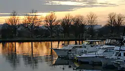 The Washington Channel is a channel that parallels the Potomac River in Washington, D.C. It is located between the Southwest Waterfront on the east side and East Potomac Park on the west side. The channel is two miles (3.2 km) long, receives outflow from the Tidal Basin at its north end, and empties into the Anacostia River at Hains Point at its south end. The channel's depth ranges from 8.8 feet (2.7 m) to 23 feet (7.0 m).[1][2]