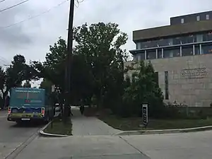 The law school campus is less than a mile from the main American University campus, however a shuttle system is available for students and staff to travel between the two locations.[26] The campus is accessible to students and faculty 24/7 with the use of an AU ID card.