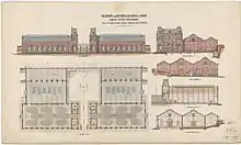 The Royal Commission proposed to design a board of works in 1888, which was eventually established in 1890 under the name of Melbourne and Metropolitan Board of Works (MMBW).[31][32] The scheme that would have reformed the usage (at that time comprehensive of both freshwater supply and sewerage disposal) of Melbourne's Yarra river waters was launched during the depression which hit the city during the 1890s.[32] The initial debt and difficulties did not stop its creation, and the building processes started in 1892.[32]