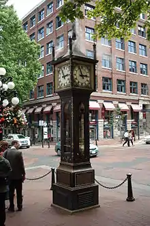 Water Street is a street in the Gastown area of Vancouver, British Columbia. It is named for its proximity to the water, in this case the south shore of Burrard Inlet, and was briefly known as Front Street.[1] Water Street is popular amongst tourists; its most famous landmark is the steam clock.[2]