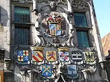 Heraldic shields of the Hoogheemraadschap of Delfland in 1645, the year that it bought this house for board meetings. The shields are on the façade of the Gemeenlandshuis Delft.
