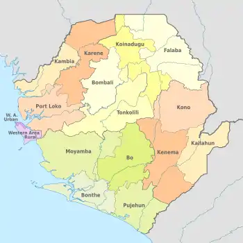 As of 2010, Salwaco provides piped water in the towns of Lungi (Port Loko District), Makeni (Bombali District), Bo and Kenema) and was in the process of providing water in Mile 91, Pujehun and Kabala (Koinadugu District). Although Salwaco is supposed to transfer service provision in these towns to local councils, this has not happened so far. Salwaco is also supposed to assist local councils in other parts of the country in planning, building, operating and maintaining water systems, but has little capacity to do so. Local councils also have limited capacities, including for water supply. Water supply and sanitation departments were supposed to be set up in 2007 in local councils, but it is unclear to what extent this has happened.[13]