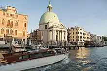 Water taxi near the train station on the Grand Canal in Venice, Italy