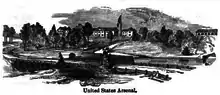 The arsenal's site, duties, and buildings grew gradually until the American Civil War, enlarging beyond the original quadrangle. During the war it greatly expanded to produce field and coastal gun carriages, and the war's impetus led to the quick construction of a large machine shop and smith shop built as contemporary factories, as well as a number of smaller buildings.