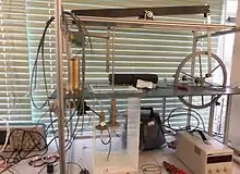In order to demonstrate the principle, a 25 watt experimental model engine was built and tested. The engine incorporates steam expansion as well as new features such as electronic control. The picture shows the model built and tested in 2016.[23] Currently, a project to build and test a scaled-up 2 kW engine is under preparation.[24]