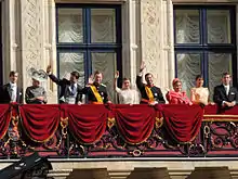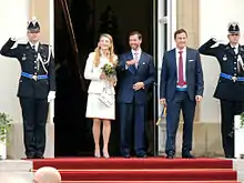 The couple exchanged a public kiss before a crowd of well-wishers on the balcony of the Grand Ducal Palace after the ceremony.[3]