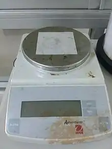 Weighing paper is often used when weighing solid, powdery substances on an analytical balance. By preventing the substance from being gunked up, it increases the precision of the measurement.[1][2]