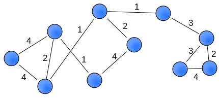 A weighted network is a network where the ties among nodes have weights assigned to them. A network is a system whose elements are somehow connected (Wasserman and Faust, 1994).[1] The elements of a system are represented as nodes (also known as actors or vertices) and the connections among interacting elements are known as ties, edges, arcs, or links. The nodes might be neurons, individuals, groups, organisations, airports, or even countries, whereas ties can take the form of friendship, communication, collaboration, alliance, flow, or trade, to name a few.